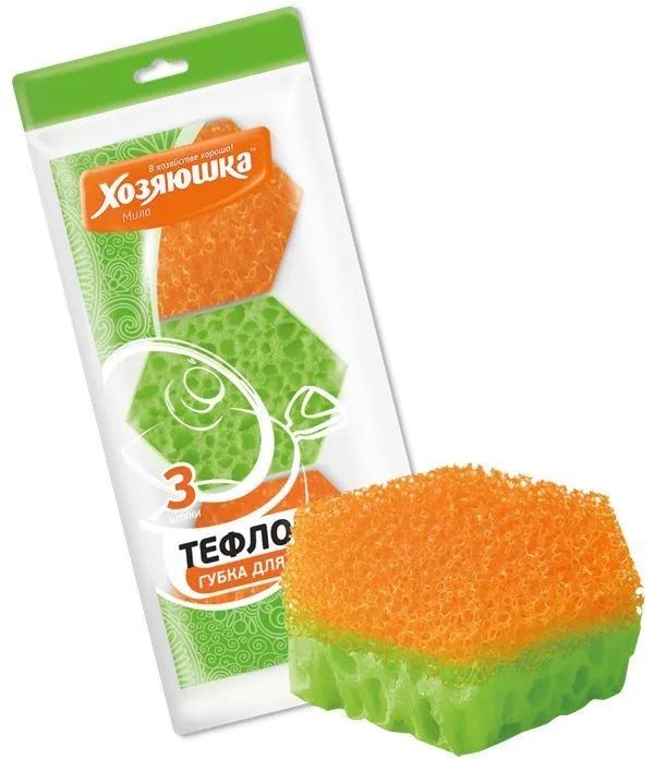 Губка для посуды 3шт ХОЗЯЮШКА Мила ТЕФЛОША
