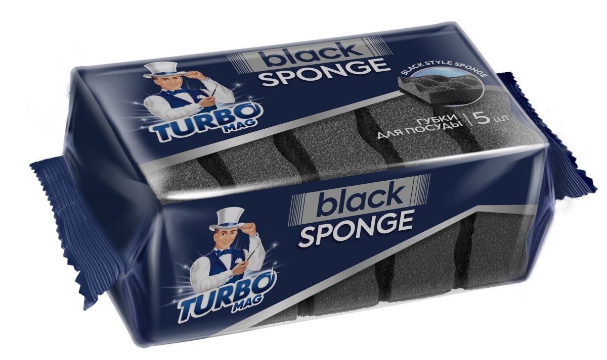 Губка для посуды TURBOMAG Black, 5шт.