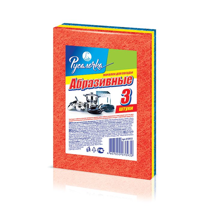 Мочалка для посуды 3шт Русалочка Абразивная