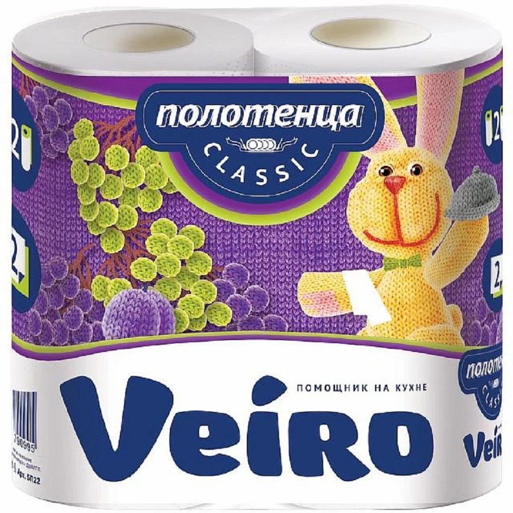Полотенца бумажные Veiro Classic белые, двухслойные, 2 рулона в упак.