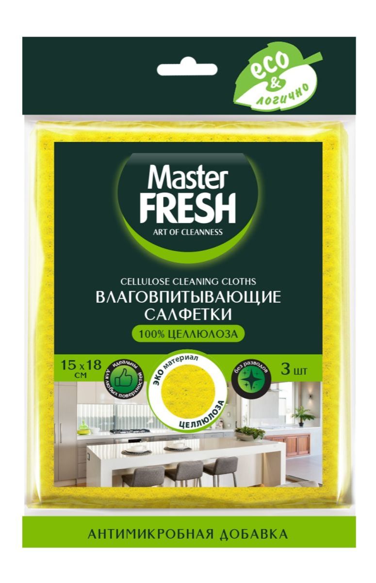 Салфетка Master Fresh целлюлозная антимикробная добавка, 3 шт.