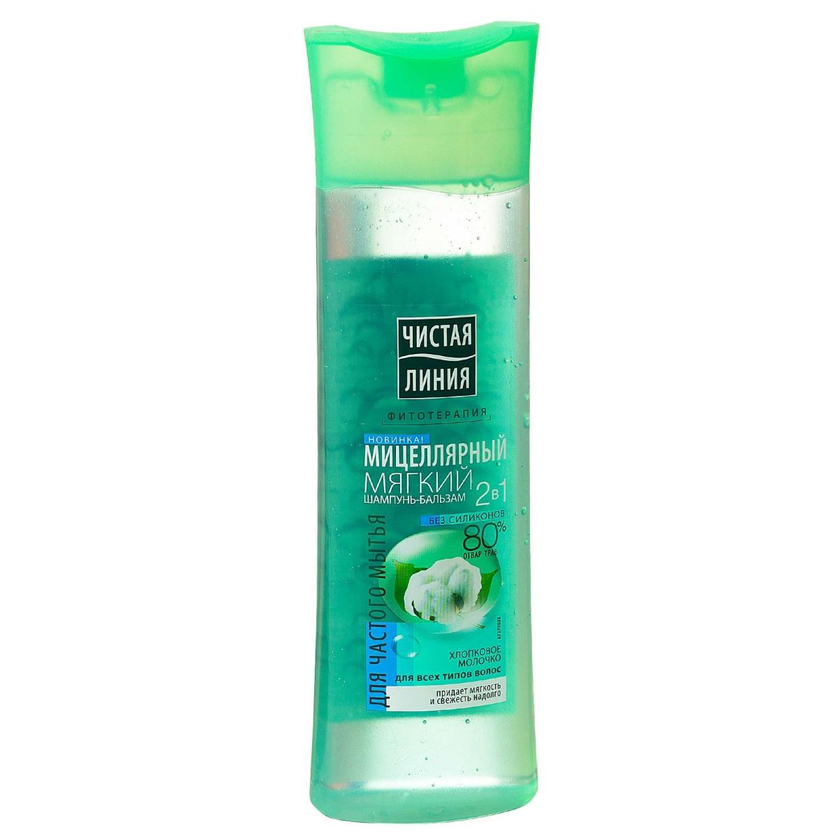 Шампунь Чистая линия 2 в1 Мицеллярный Мягкий Хлопковое молочко, 400мл.