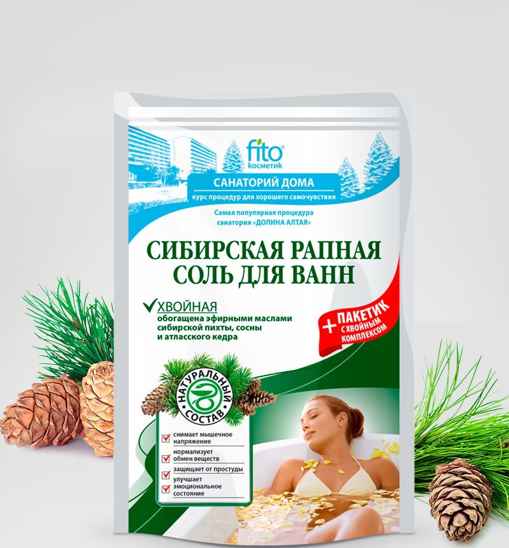 Соль д/ванн 500г+30г Fito Косметик Сибирская рапная Хвойная.