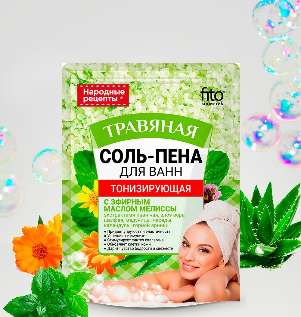 Соль-пена д/ванн 200гр Народные рецепты Тонизирующая Травяная.